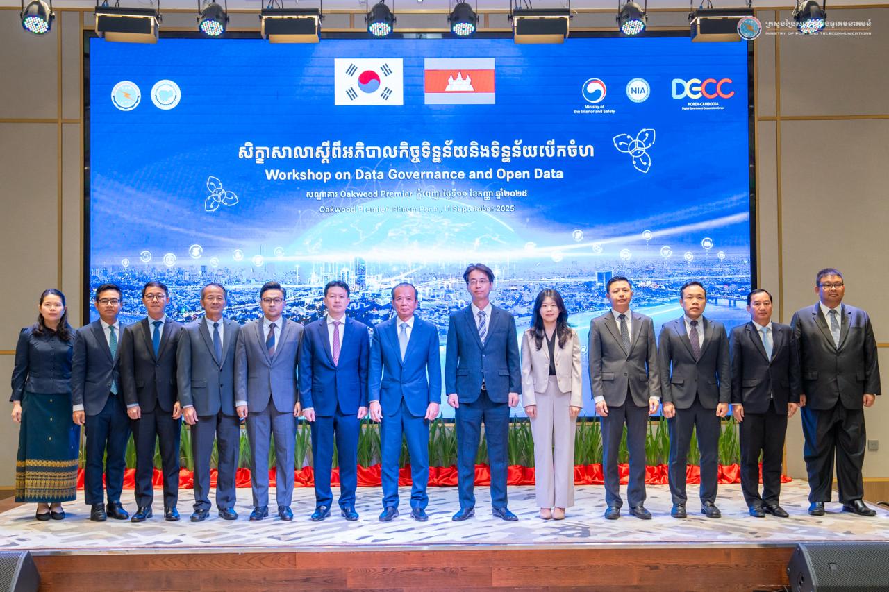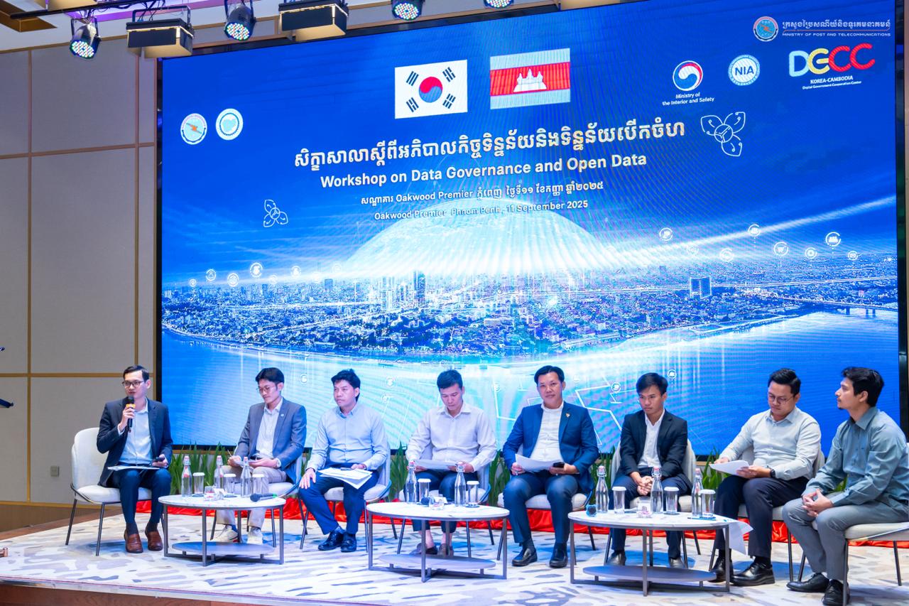 រាជធានីភ្នំពេញ៖ នៅថ្ងៃទី១១ ខែកញ្ញា ឆ្នាំ២០២៥ ឯកឧត្តម ជា វ៉ាន់ដេត រដ្ឋមន្ត្រីក្រសួងប្រៃសណីយ៍និងទូរគមនាគមន៍ (ក.ប.ទ.) និងជាប្រធានគណៈកម្មាធិការរដ្ឋាភិបាលឌីជីថល (គ.រ.ឌ.) បានអញ្ជើញជាអធិបតីក្នុងពិធីបើកសិក្ខាសាលាស្តីពី “អភិបាលកិច្ចទិន្នន័យនិងទិន្នន័យបើកចំហ” នៅសណ្ឋាគារ Oakwood Premier Hotel ដោយមានការអញ្ជើញចូលរួមពីលោកបណ្ឌិត Jung Seongho សហប្រធានមជ្ឈមណ្ឌលសហប្រតិបត្តិការរដ្ឋាភិបាលឌីជីថលកូរ៉េ-កម្ពុជា (DGCC) តំណាងទីភ្នាក់ងារសហប្រតិបត្តិការអន្តរជាតិកូរ៉េ (KOICA) ថ្នាក់ដឹកនាំ ក.ប.ទ. និងតំណាងក្រសួង ស្ថាប័ន អ្នកស្រាវជ្រាវ តំណាងវិស័យអប់រំ និងវិស័យឯកជន ប្រមាណ ១៣០រូប។